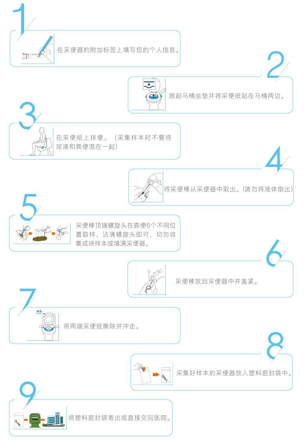 試劑盒360度全方位封閉;試紙條全封閉包裝,無需人工放入;硅膠防滑處理,增強試劑盒密閉性;家庭采便,操作人員與樣品零接觸。