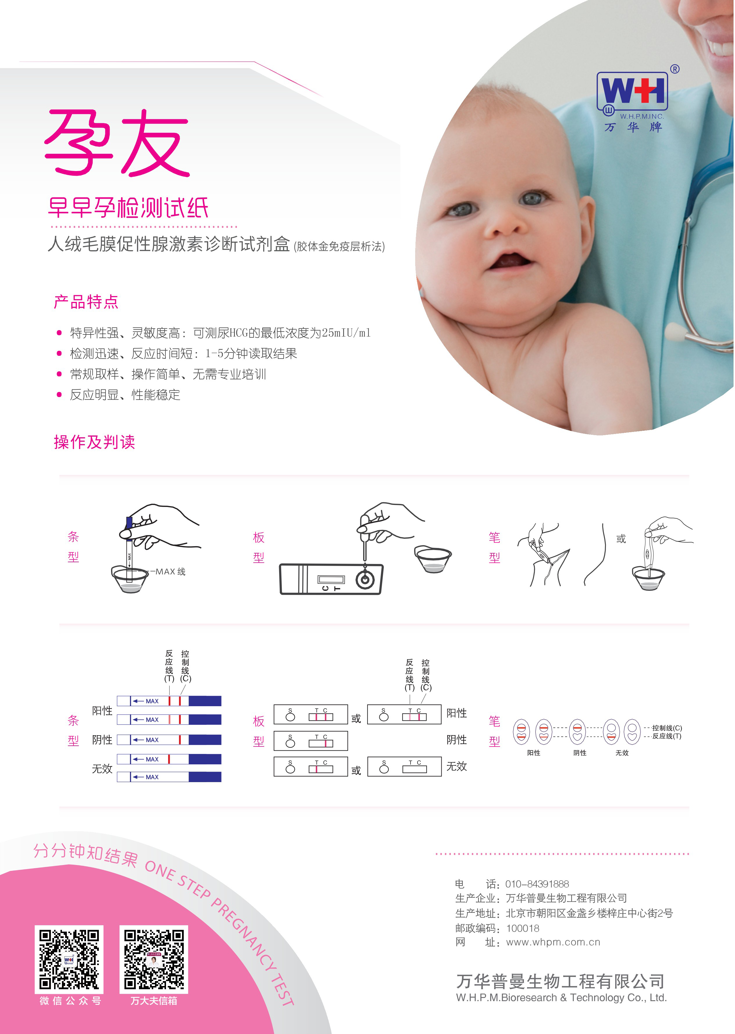 本品采用雙抗體夾心法研制,用于定性檢測人體尿液中人絨毛膜促性腺激素的含量,適用于育齡婦女早期妊娠檢測。人絨毛膜促性腺激素 (HCG) 是一種糖蛋白,由胎盤產生。由于分子量較小,可通過腎小球從尿中排出,所以測定尿液中的HCG是診斷妊娠的較可靠指標。試紙采用單克隆膠體金生物技術,可以檢出最低量為25mlU/ml的人絨毛膜促性腺激素,通過檢測育齡婦女受孕后尿液中的 HCG,判斷是否懷孕。適用于育齡婦女早期妊娠檢測。
